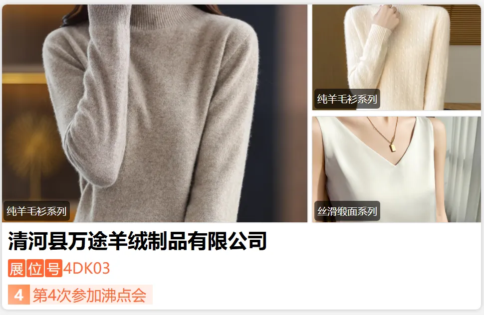 奢姿雅服饰品牌是专业为私域渠道和直播渠道提供品质好、款式美、价格优的优质服饰品牌方。奢姿雅服饰坐落于世界羊绒之都——河北省清河县羊绒小镇,自有奢姿雅品牌,品控非常严格,产品质量好、款式多、上新快、补货快。奢姿雅服饰可以提供完整的产品图文素材和一对一专业的售后服务,支持纯佣分销、一件代发和批发集采。-展位号:4DY16-