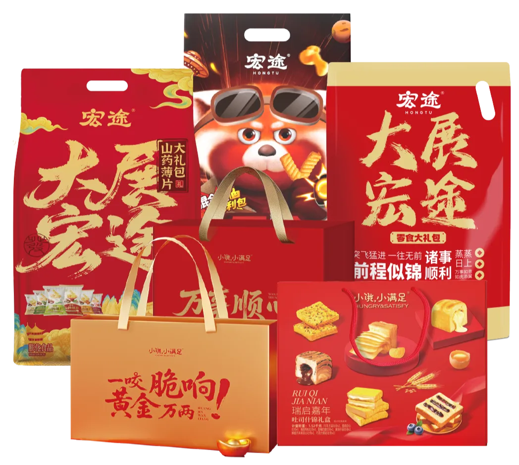 此次展销会产品陈列面积达150余平方米,是公司历年来规模最大、品类最全的一次年货集中展示。现场划分为限量礼盒区、膨化礼包区、自由拼选区和特惠秒杀区四大区域,集中展示了公司20余款产品。“没想到宏途食品有这么多新产品!”正在选购的顾客王女士表示,“各种礼盒、礼包、休闲零食、烘焙餐点一站式购齐,特别方便。