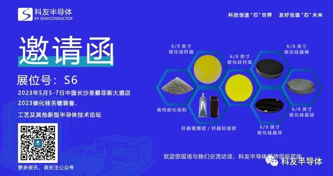 2023年5月5-7日,“2023碳化硅关键装备、工艺及其他新型半导体技术论坛”将在中国长沙圣爵菲斯大酒店举办。科友半导体诚邀您莅临展位S6参观、交流及业务洽谈。