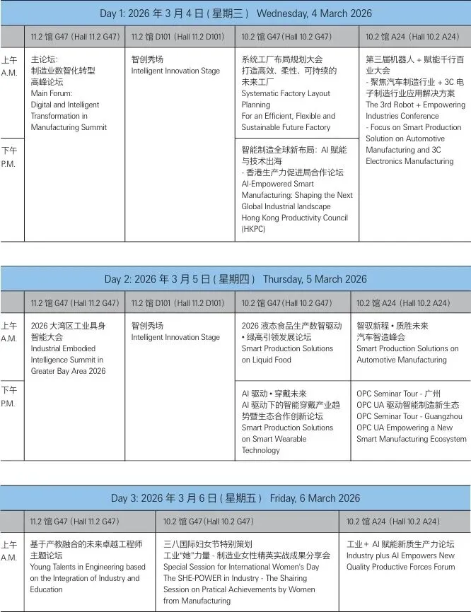 SPS 广州智能制造展同期重磅打造12大专业论坛,以制造业数智化转型为主轴,聚焦具身智能、工业AI、数字孪生、工业网络安全等前沿赛道,覆盖汽车制造、智能穿戴、食品饮料等垂直领域,联动 OPC UA 生态建设、未来工厂规划、产教融合等核心议题,更设技术出海、机器人+、工业女性力量等特色专场,汇聚全球智造智慧,为产业升级提供全维度思路与落地解法。