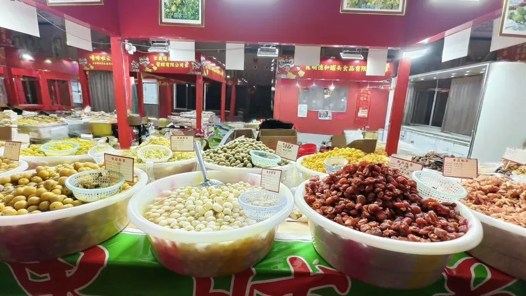 走进展馆内,买年货的人很多,简直就是人山人海。这里汇聚了云南各地的地标好物与帮扶产品:你能买到大理诺邓可生食火腿、寻甸牛干巴、东川面条、昭通天麻等经典特产,还有文山红果参、普洱咖啡酒等创新农产品。而且云南的特产很丰富,可以随便尝,满意了再买,真正体现了资源和服务于客户需求最大利益,实现“一站式购齐云南年味”。