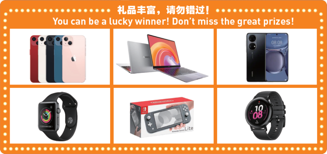 ◇ 预登记观众现场参与抽奖活动,赢取苹果手机、华为笔记本电脑、switch游戏机等奖品,中奖率超高!