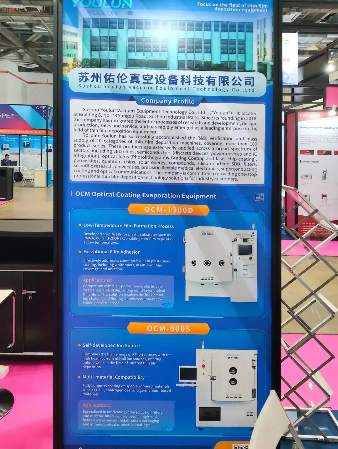 YOULUN佑伦真空携最新光学薄膜沉积设备与解决方案亮相本次展会。通过清晰的品牌定位和系统的产品展示,我们全面呈现了公司在真空技术领域的研发积累与工艺创新能力,重点展出了针对光电产业核心需求的光学镀膜设备及半导体制造配套真空系统解决方案。