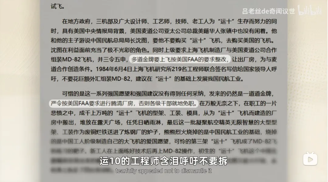 而且为了给MD-82腾地方,投资过亿的运10生产线被拆除,运10的工程师含泪呼吁不要拆,马凤山更是抱病遗憾离世。