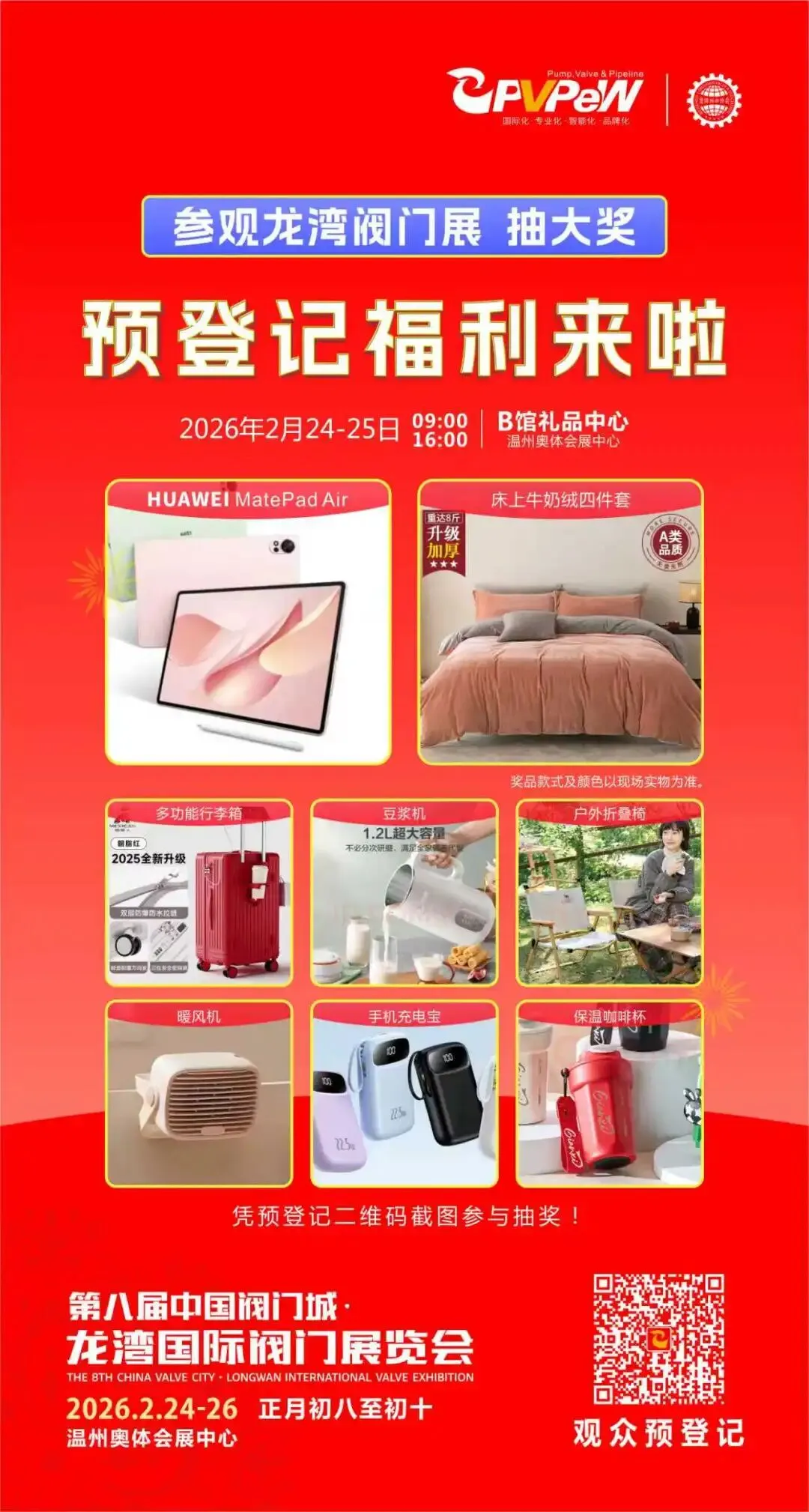 共赴阀门行业年度盛宴,同探发展新机遇,共赢未来新征程!中国龙湾阀门城诚邀全球采购商拨冗莅临、携友赴约,观展之余福利享不停:专属伴手礼免费领,幸运大奖轮番抽,让你收获商机的同时,更有好礼大奖双丰收!