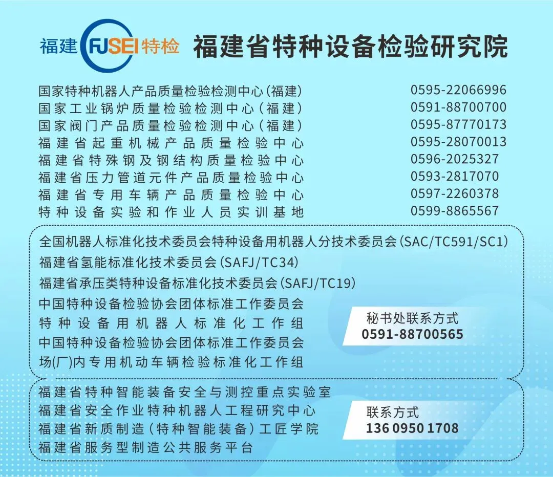 福建省特种设备检验研究院,由原福建省锅炉压力容器检验所和福建省特种设备监督检验所于2007年7月合并组建成立,是锅炉、压力容器、压力管道、电梯、起重机械、大型游乐设施、场(厂)内专用机动车辆等七大类特种设备的第三方、公益性的法定检验检测机构。主要负责特种设备监督检验、定期检验和特种设备作业人员考试,并受福建省市场监管局委托开展其负责许可的特种设备生产(制造、安装、维修)单位的行政许可鉴定评审,以及负责场(厂)内专用机动车辆型式试验、工业锅炉能效测试等工作,是我省特种设备安全节能的重要技术保障单位。