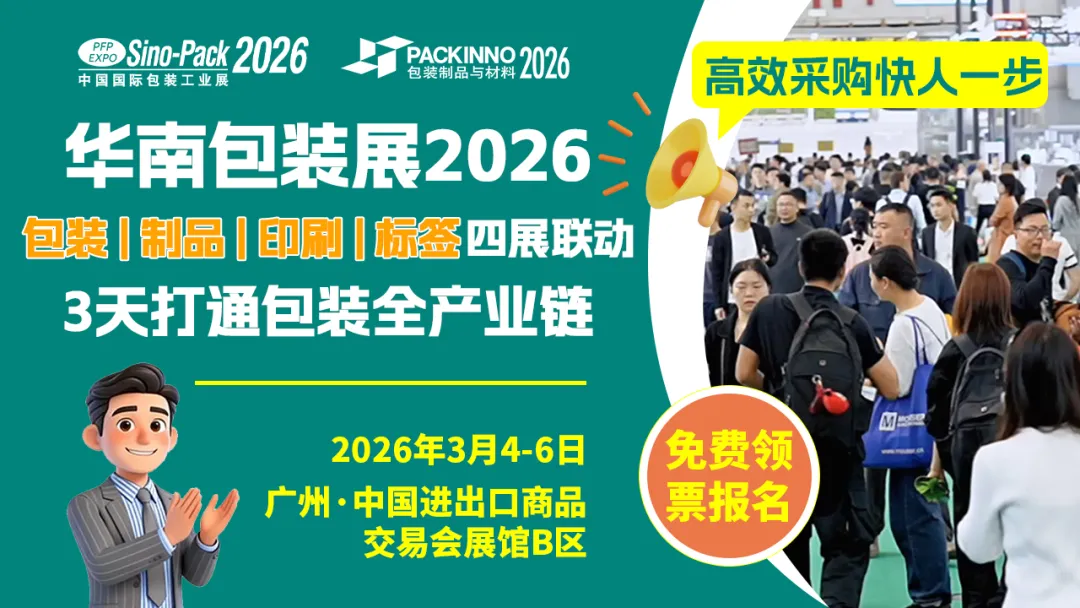 2026年3月4日至6日,包装行业年度盛会——第三十二届中国国际包装工业展览会(Sino-Pack 2026)暨2026中国(广州)国际包装制品展览会(PACKINNO 2026)将在广州·中国进出口商品交易会展馆B区盛大启幕。