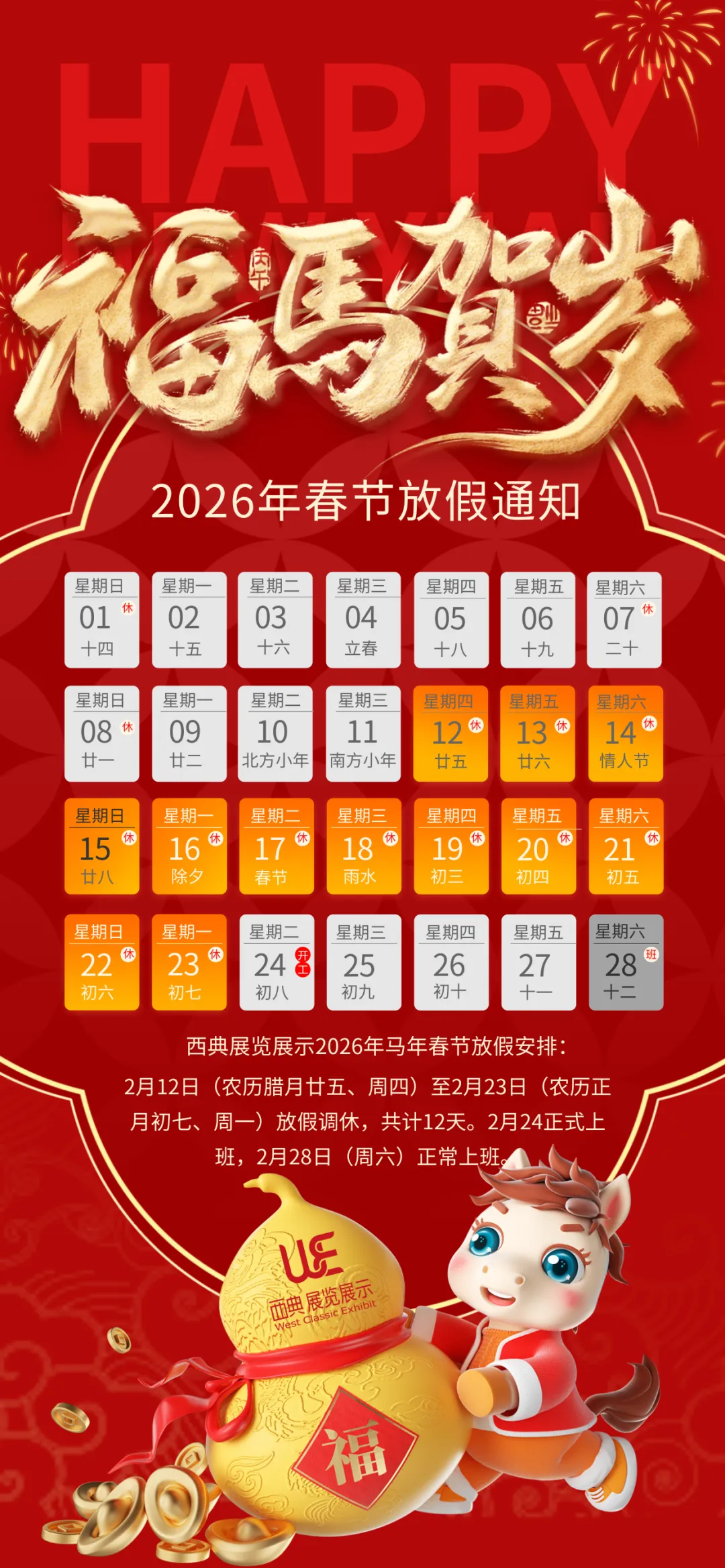 西典展览展示丨2026春节放假通知