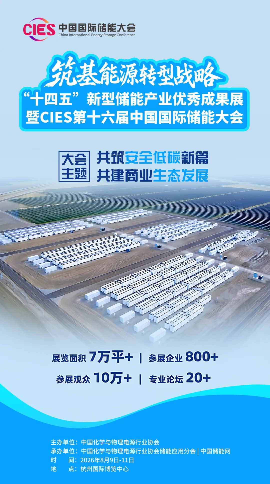 为更好展现储能大会高端化、专业化、国际化及市场化效果,经组委会研究决定,原定于2026年3月23日-26日在浙江省杭州国际博览中心举办的“2026CIES第十六届中国国际储能大会暨展览会”将延期至2026年8月9日—11日举办,地点不变。