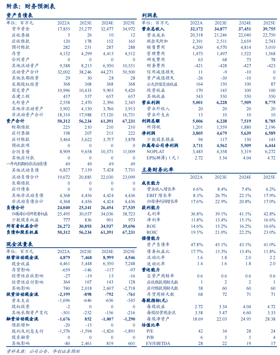 结构升级、成本收窄仍有空间,叠加费投理性,盈利有望稳步提升。展望后续节奏,4月因22年同期疫情扰动基数较低(行业规模以上啤酒企业产量同降18.3%,预期青啤销量降幅与行业相近),预计公司销量有望保持双位数高增。5月后公司积极追补故销量基数或偏高,但我们预计随着餐饮、夜场场所逐步复苏,吨价增长仍值得期待。成本端,低价包材或可兑现至报表,从而拉大吨价与吨成本剪刀差,毛利率有望加速提升。同时,结合渠道反馈,我们认为23年行业仍有望保持理性费用投放,或将增加重点餐饮及夜场终端投入,并配套其余场景及中低档费用适当收缩。综上,我们预计公司盈利水平有望稳步提升。