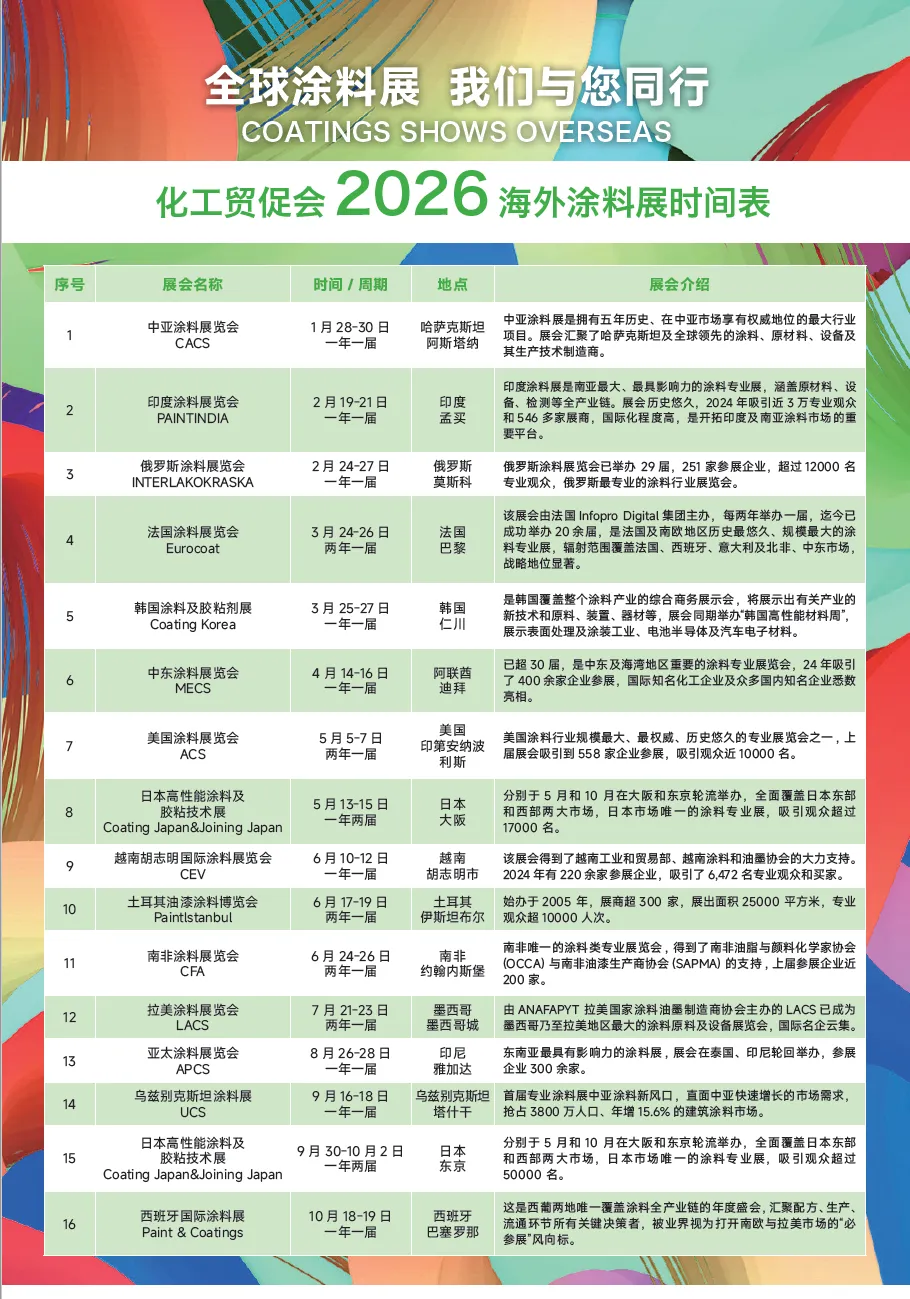 2026印度涂料展览会(PaintIndia 2026)开幕在即,为保证参展商顺利参展,特作以下通知:
