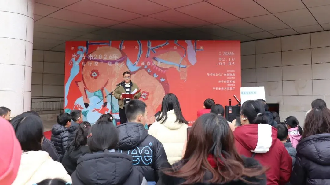 2026年2月10日下午,由毕节市文化广电旅游局指导,毕节市美术馆主办的“毕节市2026年‘天马行空’迎春少儿书画作品展”正式开幕!