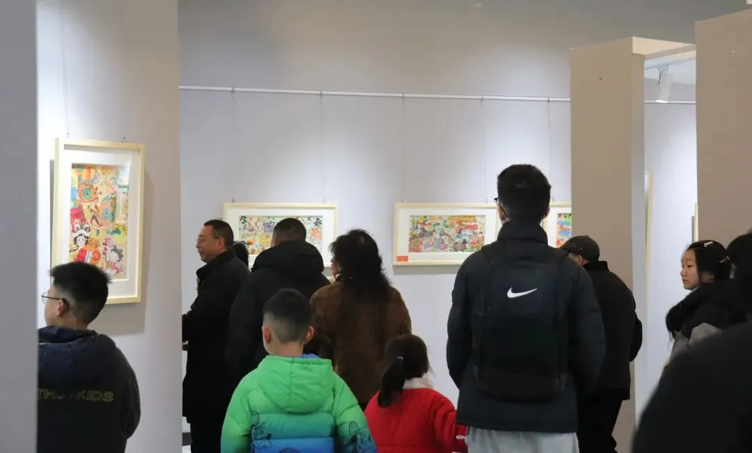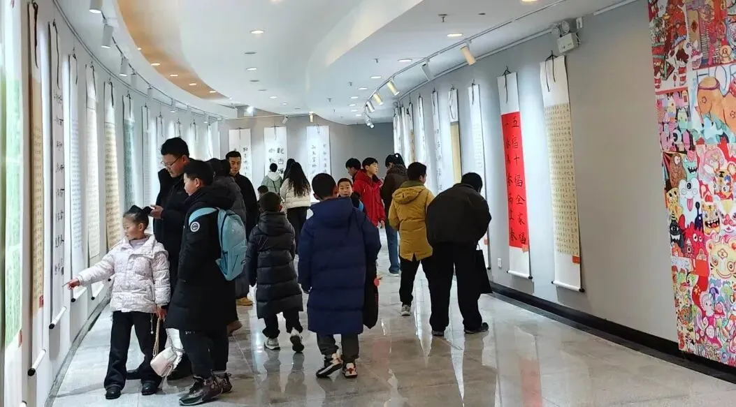 在大家的踊跃参与和大力支持下,今年展览作品质量高,题材类型丰富,不仅包含书法国画,更包含了剪纸、粘贴、拓印等。现场创作活动气氛热烈,共有200余人参加,其中少儿120余人,大家共同在愉悦欢乐的活动中迎接新的一年!
