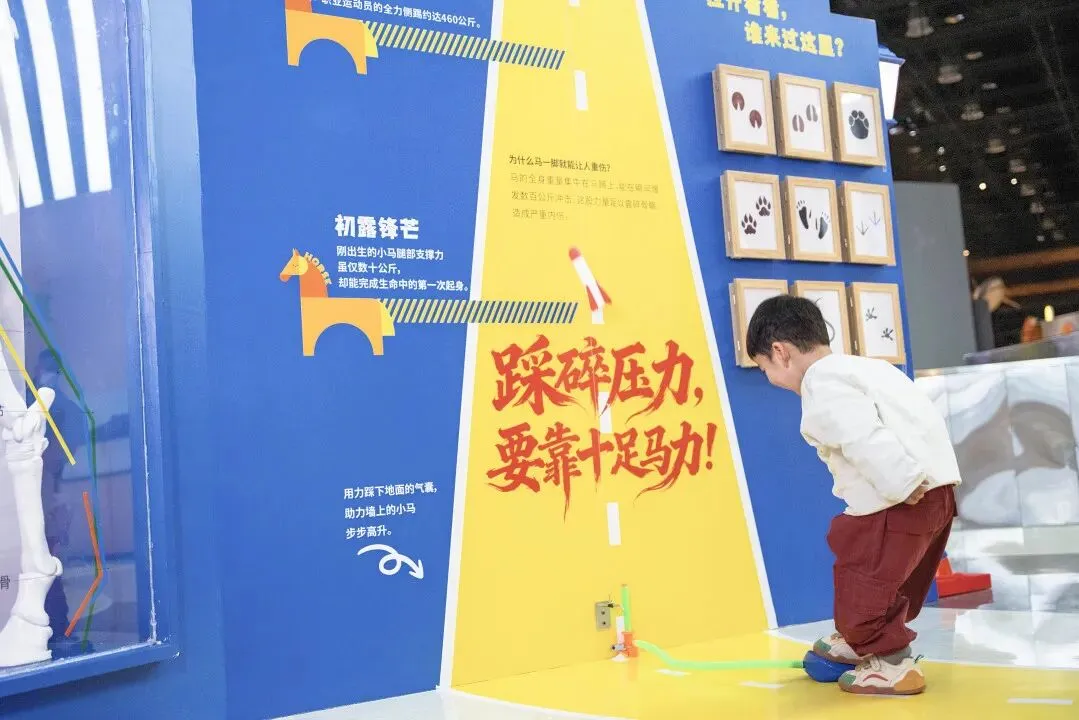 马,自古便是融贯华夏文明脉络的重要伙伴与精神象征。新春来临之际,市科技馆引进「好事」发生马年生肖科学展。展览以“马的身体结构”(头、腹、腿)为空间划分依据,分为“好彩头”、“福满膛”、“步步高”3大区域,依次科普:头部、躯干和腿部。最后设置“好运降‘铃’”打卡区,在科普马的生理特性的同时,表达新春之喜,彰显龙马精神。
