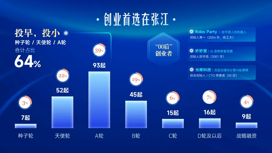 作为国家战略科技力量的重要承载地,张江科学城2025年紧跟国家战略部署、精准落实发展要求,科创“核爆点”持续涌现,产业创新活力全面迸发:张江人工智能创新小镇重磅启幕,20亿元人工智能种子基金落地运作;瞄准集成电路细分赛道,上海集成电路设计产业园推出“RISC-V生态街区”;浦东卫星互联网产业生态园、上海硅光未来产业集聚区和张江科技成果转化传播平台应运而生;张江复旦国际创新中心迎来焕新启用。在此背景下,2026张江科创金融沙龙顺利启幕。张江科建办主任、张江管理局局长肖健指出张江科学城紧扣国家战略,聚焦人工智能、生物医药、集成电路三大核心赛道,落实《聚焦张江再出发加快建设国际一流科学城行动方案》。2025年张江科创企业融资成果亮眼,210家企业完成237起融资、总额278亿元,且张江在产业基金布局、企业上市培育、产融对接平台打造等方面持续发力,已构建覆盖企业全生命周期的“科技+金融+产业”热带雨林式创新服务生态,推动创新要素高效协同、深度融合。同时,肖健还希望广大科创生态伙伴发挥桥梁纽带作用,搭建技术交流、资本对接、人才互通的平台,促进产业链、创新链、资金链、人才链深度融合,助力更多创新成果在张江转化、优质企业在张江成长。张江是上海三大先导产业集聚和发展的主要阵地,融资的行业分布也印证了这一点。去年张江生物医药、人工智能和集成电路融资合计占比达91%,较2024年提升9个百分点。生物医药是张江融资最活跃、最具确定性的赛道,总共发生85起融资,占比36%;人工智能以69起融资紧随其后,占比29%;集成电路有61起融资,占比26%。2025年张江生物医药融资较2024年增长13%,主要融资方向是原创能力强、临床路径清晰,能够真正产品化的企业。具体来看,创新药领域有58起融资,占整个生物医药赛道融资的58%,医疗器械22起,占比26%。比如,光声制药研发的新一代光敏化合物“华卟啉钠”,成为全球首个在食管癌光动力治疗领域取得III期临床成功的光敏剂,距离新药上市申报,仅一步之遥。2025年张江人工智能融资相较2024年增长146%,融资主要集中在AI应用和机器人与具身智能两大方向。“去年获得融资的傅利叶、开普勒和木蚁机器人都面向真实场景推出了相应产品,说明资本关注的重点已经从模型强度跨越到真正的生产力,获得融资的企业大多能够在真实场景中跑通业务闭环。”张通社创始人、加冕科创CEO郑小辉说。2025年张江集成电路有61起融资,相较2024年增长33%,主要集中在IC设计、半导体材料、EDA等环节,钱主要流向“补短板、强能力、技术关键节点的方向。《上海市政府投资基金管理办法(试行)》明确创业投资类基金要围绕发展新质生产力,支持科技创新,重点投早、投小、投硬科技,提升自主创新能力和关键核心技术攻关能力,去年张江融资正是这一导向的写照。从融资轮次来看,237起融资中种子轮、天使轮和A轮占比64%,这不仅是资本的偏好转向,更说明很多创业者将张江作为他们创业的起点。其中,A轮融资以93起、39%的占比成为全年最活跃阶段,说明张江正在集中孕育一批具备放大潜力的成长期企业。从企业画像看新获投企业的含金量十足。210家获投企业中有75家高新技术企业、95家专精特新中小企业、27家专精特新小巨人企业和33家独角兽企业。另外,有8家企业有全球“首个”“首例”级别的突破,9家企业填补了国内技术空白,近30家在攻坚未来技术方向。如愈方生物、恩凯赛药等企业在端粒调控、能化NK细胞等技术上实现全球首创突破,开普勒机器人实现量产并斩获国际赛事冠军,奥朋医疗完成全球首例机器人辅助EVAR手术等。从融资情况可以观察到的另一个趋势是00后创业者的存在感越来越强。比如Robo派对的创始人黄一出生于2004年,在校期间就做出了全栈开源的人形机器人;“妙妙宠”是一家做AI宠物智能项圈的公司,创始人段宇皓出生于2001年,且已经是一位连续创业者。从资本参与情况看,2025年共有512家投资机构参与张江企业投融资,涵盖国有资本、产业资本及市场化创投机构等多种类型,资本结构更加多元。上海未来产业基金董事总经理李然表示,以科学家+创业者+投资人为核心的孵化新模式,正在推动颠覆式创新加速到来。勇立时代潮头,张江将始终与国家战略同频共振,以更开放的姿态、更完善的创新生态、更强劲的发展动能,稳步向世界级科创高地迈进,持续激活新质生产力发展活力,为我国实现高水平科技自立自强、建设科技强国贡献更多张江力量。来源:张通社、文汇报