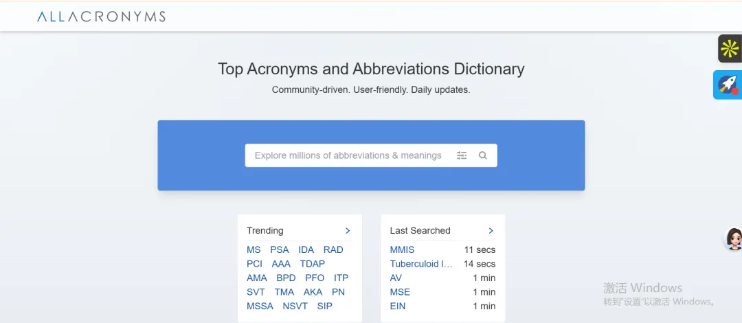 All Acronyms是一个实用的在线缩略词查询工具,用户输入缩写即可快速获取其完整释义及相关信息。在与海外客户沟通时,无论是邮件还是即时对话中出现的陌生缩写,都可以借助该工具准确理解其含义,从而更顺畅地把握客户意图。