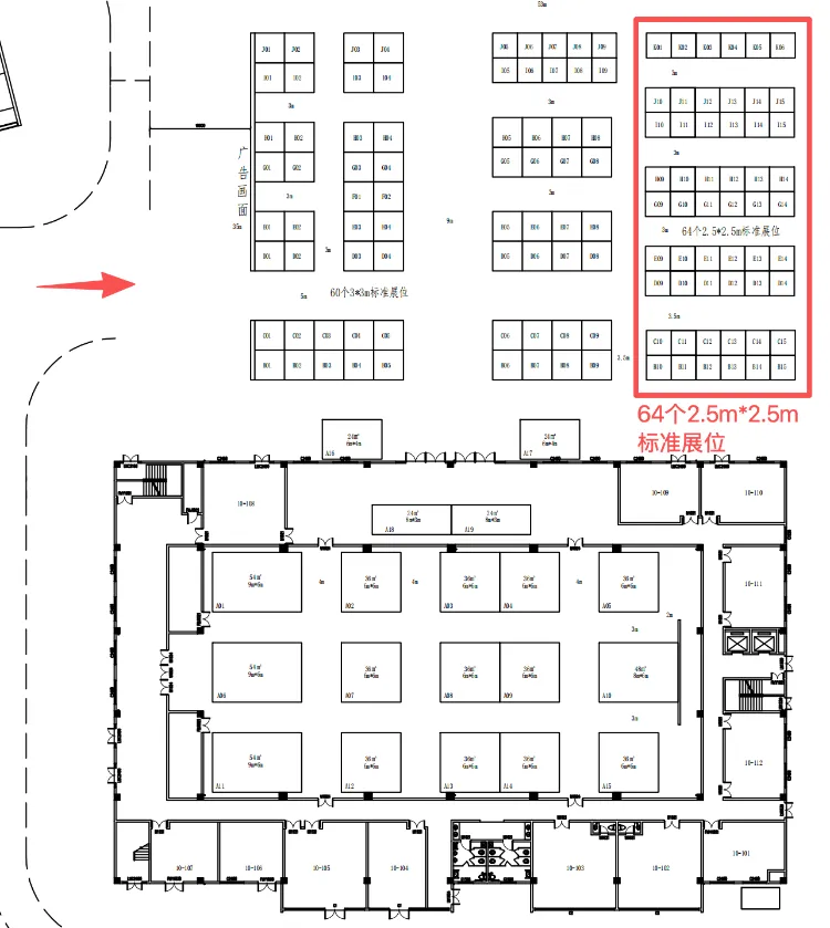 全局展位图及陶瓷原辅料装备专区(标红)示意