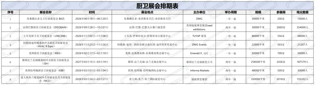 卫浴展会排期表
