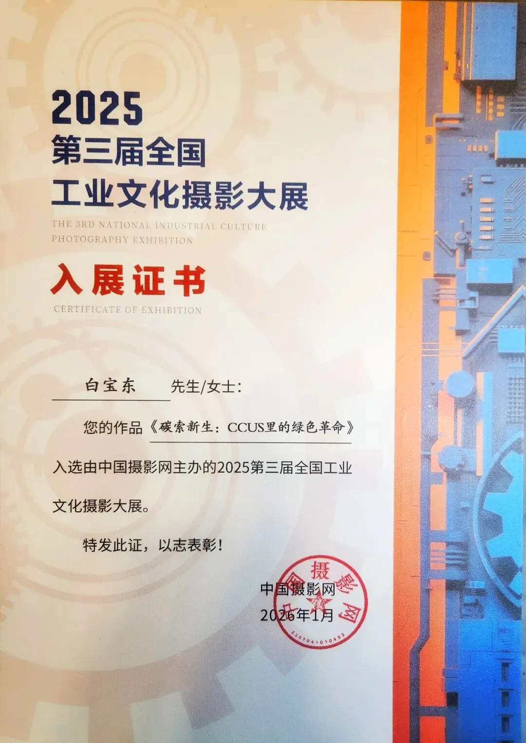 工业文明的时代光影,在镜头下定格成永恒。近日,2025年第三届工业文化摄影大展圆满落幕,经严格评审与社会公示,最终入展名单正式确定。采油厂党委工作室宣传干事白宝东摄影作品成功入选,以独特视角展现石油工业之美与一线奋斗风采。