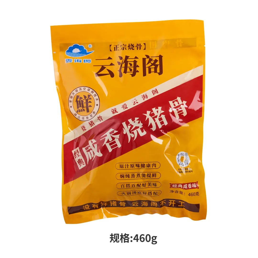 云海阁烧骨是选用优质多肉的猪脊骨,经多种配料腌制而成的,八腌八烤咸香入味,骨髓与肉的恰当结合,正啊,吃过都返寻味。
