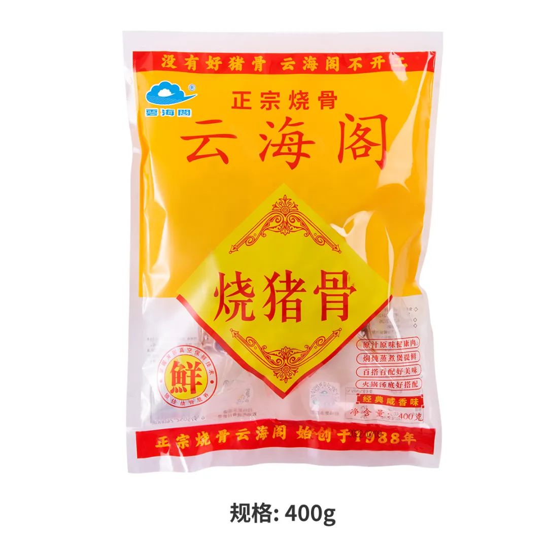 云海阁烧骨在广东是街坊喜爱的食品,是一种增鲜提味的肉品食材(类似瑶柱,蚝干,虾干等等),当地人都识用烧骨烹饪多样菜肴:如烧骨菜干粥、烧骨剑花汤、烧骨焗饭,烧骨火锅底料 、烧骨炖萝卜、烧骨煮芋头,烧骨炆莲藕,百搭百配,提鲜好味,好吃!烧骨是可以降火的,云海阁烧骨好吃营养又降火。全国销量前列的品牌。荣获广州花都特产人气奖!