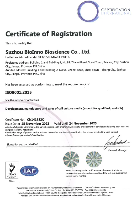 在全球生物医药产业规范化发展的大背景下,合规能力与规模化产能成为企业合作的核心考量。百因诺持续深耕国际合规体系建设,CDMO业务通过欧盟QP审计,培养基产品符合ISO 9001与ISO 13485体系,已完成美国DMF备案,同时拥有约12000平方米研发与制造基地、多条专业化生产线及规模化产能体系,完善的质量与供应能力,为全球客户提供稳定、可靠的全方位支持,成为吸引全球伙伴洽谈合作的重要底气。