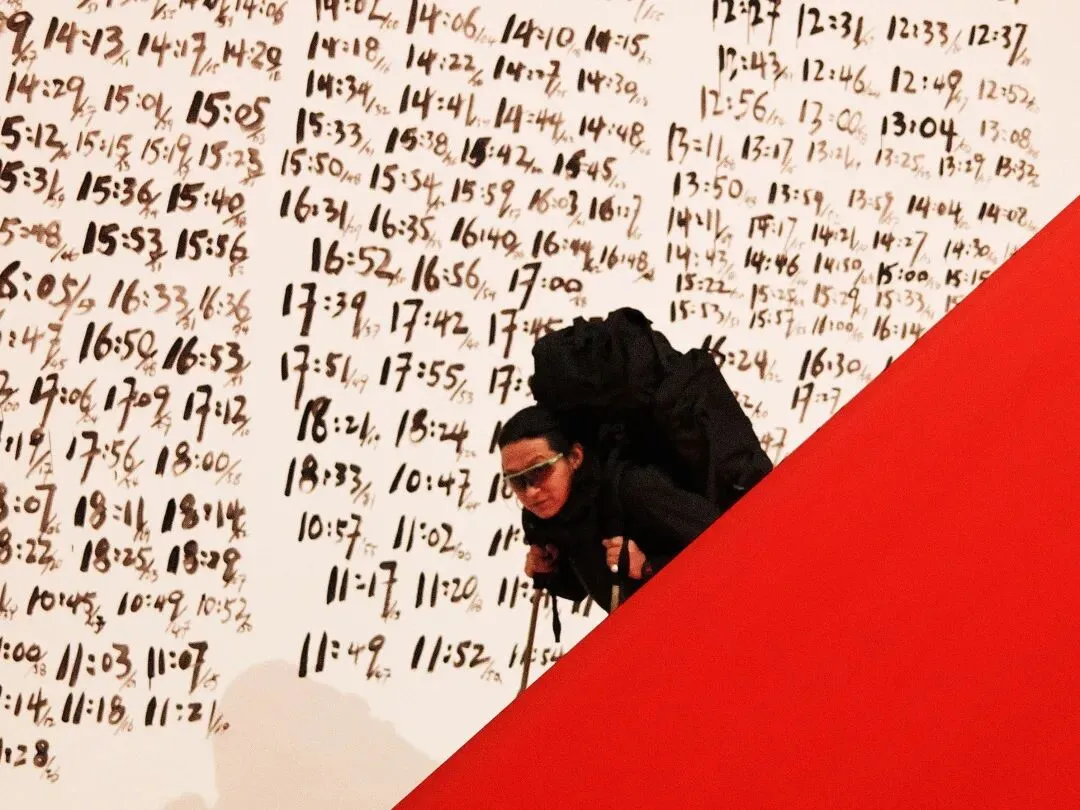 (注:墙面时间之外的文字为观众即兴书写,与作品无关)