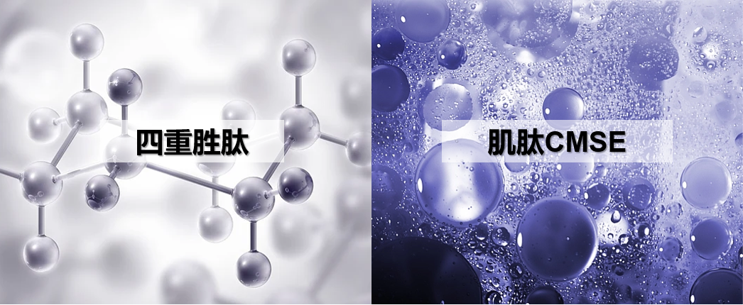 四重胜肽+肌肽CMSE:棕榈酰三肽-1、棕榈酰四肽-7、乙酰基六肽-8、棕榈酰五肽4,四肽协同,多维度复合提拉紧致;同时促进胶原蛋白、弹性蛋白和铆钉蛋白的生成,形成多维紧织“胶原弹力网”,兜住皮肤支撑力。而肌肽CMSE能快速中和糖基化终末产物AGEs(AGEs对细胞是有毒的),防止胶原蛋白变脆变黄,从而恢复肌肤天然弹性,达到紧致抗皱的功效。