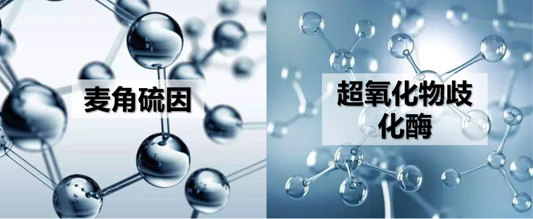 麦角硫因+超氧化物歧化酶:作为当下热门抗氧化新贵成分,麦角硫因是机体内的重要活性物质,可以有效的清除皮肤中的-OH,螯合二价铁离子和铜离子,能在紫外线连续照射18个小时的情况下使70%的细胞仍保持还原性;而超氧化物歧化酶是一种源于生命体的活性物质,能消除生物体在新陈代谢过程中产生的有害物质,是氧自由基的自然天敌,两者叠加协同作用,具有极强的抗氧化能力,具有显著的具有防辐射、美白、减少皱纹袋、收缩毛孔、延缓衰老等作用。