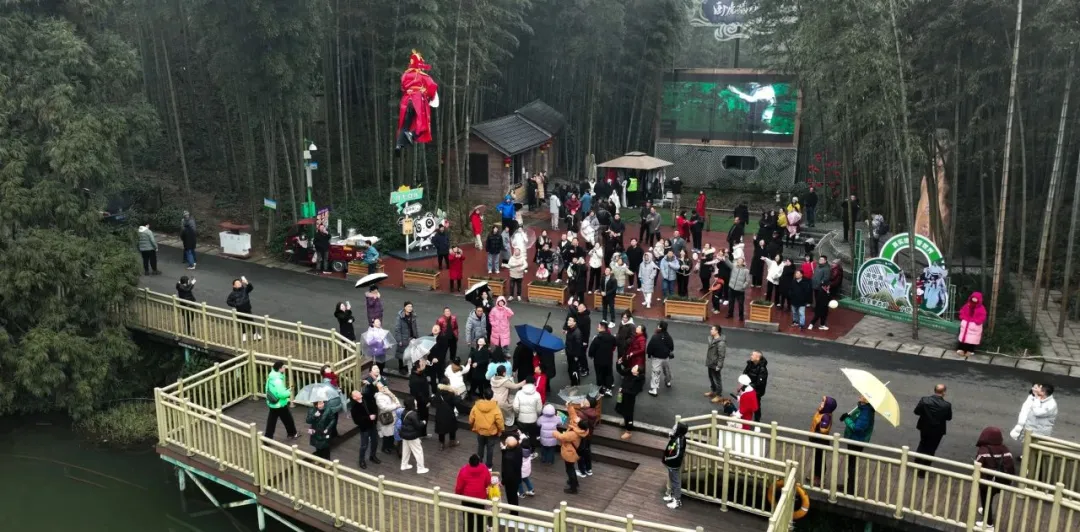 蜀南竹海景区以“竹够有趣·Young气开新纪”为主题,组织200名大学生参与竹筏竞速、竹尖飞跃、熊猫苑互动、竹编手工及徒步寻宝等活动,项目兼具趣味性与传播性,受到年轻游客欢迎。兴文石海景区依托《逍遥宴》《石海长歌》等核心演艺,推出“蛟龙出海·新年第一游”主题活动,融合僰人巡游祈福、沉浸式歌舞快闪、非遗火壶表演及NPC场景互动等环节,有效增强游客参与感和体验度。