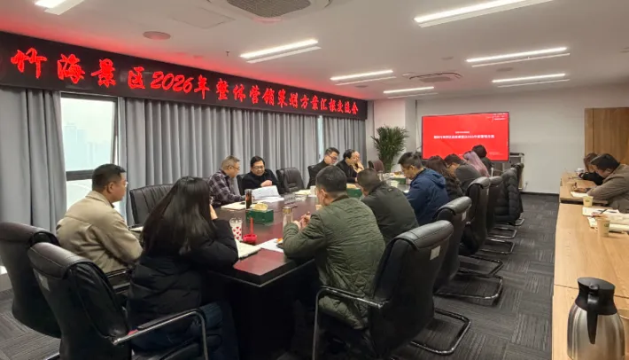 1月14日,市文旅会展集团公司召开专题会议,深入研究蜀南竹海景区2026年度整体营销策划及春节专项活动方案。集团党委副书记、总经理、董事李建章主持会议,党委书记、董事长曹杨出席会议并讲话。