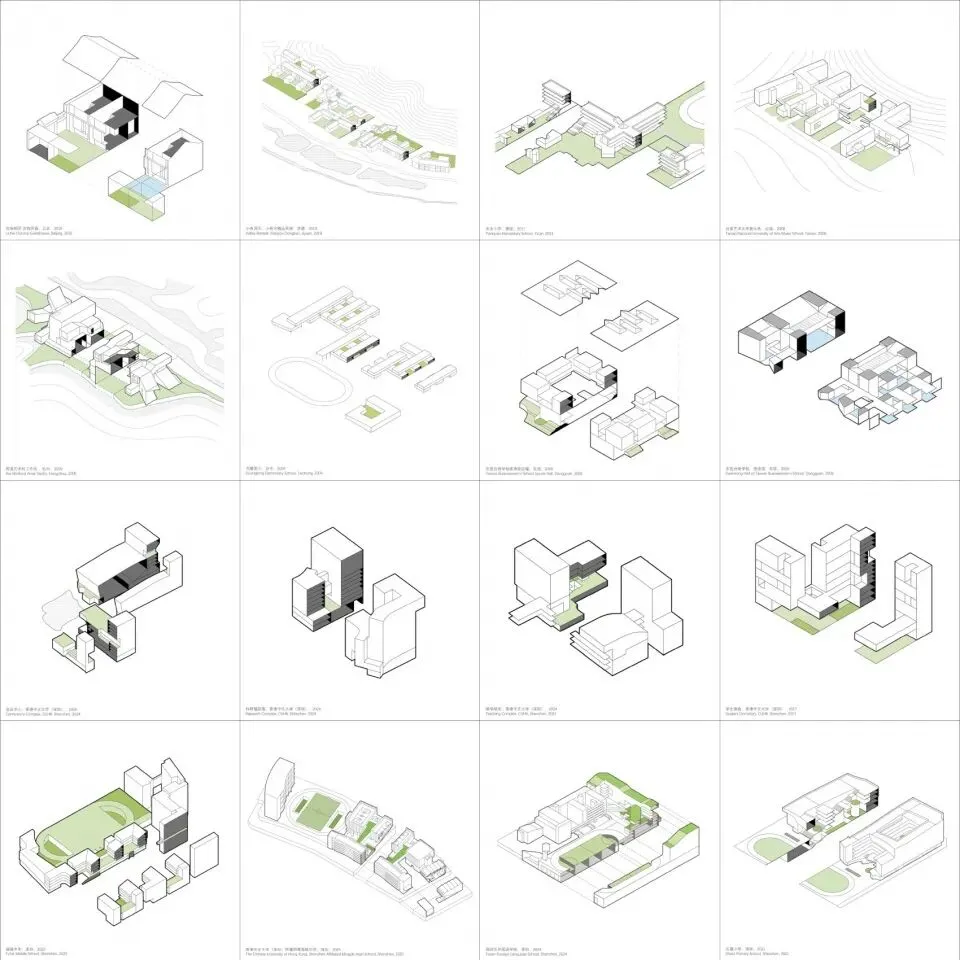 “城乡校园”探讨合院主义作为跨文化空间原型:合院,在当代高密度城市,如何发展为一种多层立体城市空间系统,协调建筑的空间尺度与自然景观。透过研究室近年完成的校园设计包括香港中文大学(深圳),深圳石厦小学、明德高中、福海中学、福田外国语学校以及松阳丽水学院,展览进一步探讨合院主义作为一种类型学的剖面设计方法,如何通过迭加与交错、围合与连接,序列与过渡、大树与水塘,形成有效的空间策略,维系建筑的人本和生态环境的可持续。