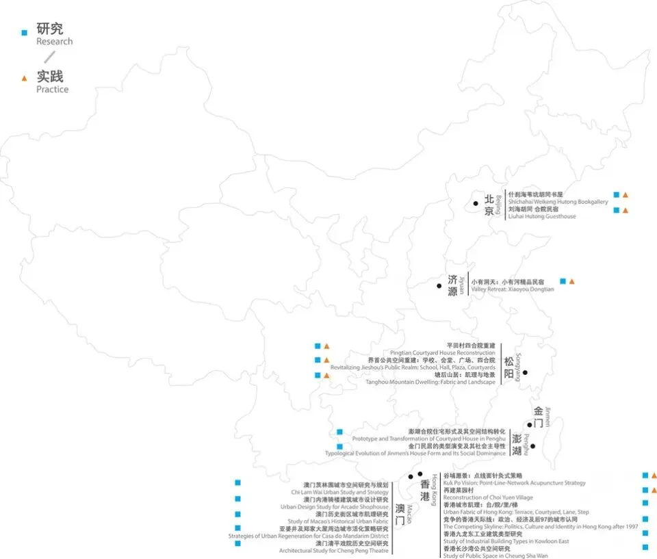 “研究实践”呈现研究室在城乡环境中的研究与设计实践。从澳门的茨林围、内港骑楼到香港的城市肌理研究,再到北京胡同、浙江松阳、河南王屋山、香港谷埔村等多个地域的建筑保育再利用与设计改造,以及香港菜园村的重建与小区营造,思考在城乡环境变迁下,城市与乡村、建筑与景观、湿地与聚落、高层与低层、保育与创新的二元辩证与共生关系。