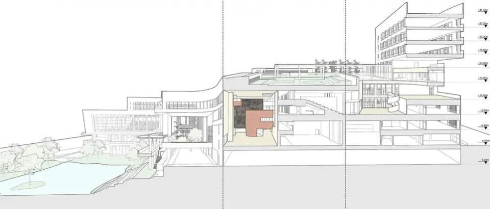 ▲港中深会议中心建筑组群剖面©王维仁建筑研究
