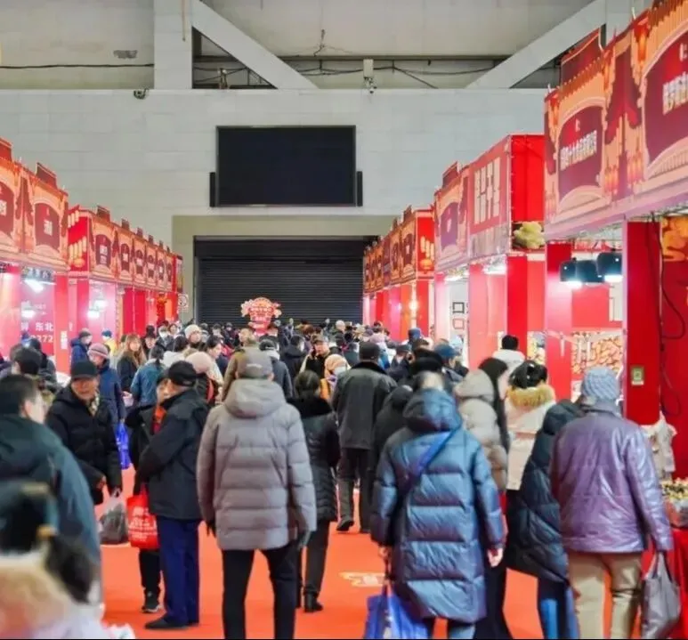 本次博览会汇聚本地特色与全国风物:宁夏滩羊肉、枸杞等本土特产摊位前,询价、购买的市民络绎不绝;来自全国各地的干货、糖果、酒水、海鲜等年货专区,也围满了精心挑选的顾客。