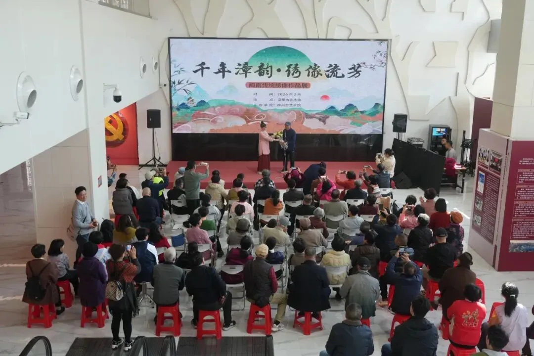 翰墨凝香迎新春,绣像丹青展漳韵。2 月 11 日上午,《千年漳韵 绣像流芳》漳州市艺术馆新春年画展正式启幕,现场宾客云集,浓郁的闽南风情与新春氛围交融,为市民带来一场别样的文化盛宴。