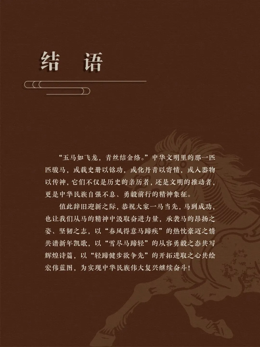 马,自古便是人类不可或缺的伙伴。从神话传说中的祥瑞灵物到诗词歌赋里的常见意象,从战场上的骁勇善战到田野间的勤恳劳作,从古画里的俊美矫健到典籍中的笔墨印记,在漫长的历史长河中,马早已超越单纯的工具属性,成为自由和吉祥的化身,成为坚毅和奋进的象征,成为中华民族乃至全人类精神图谱中的鲜活符号。