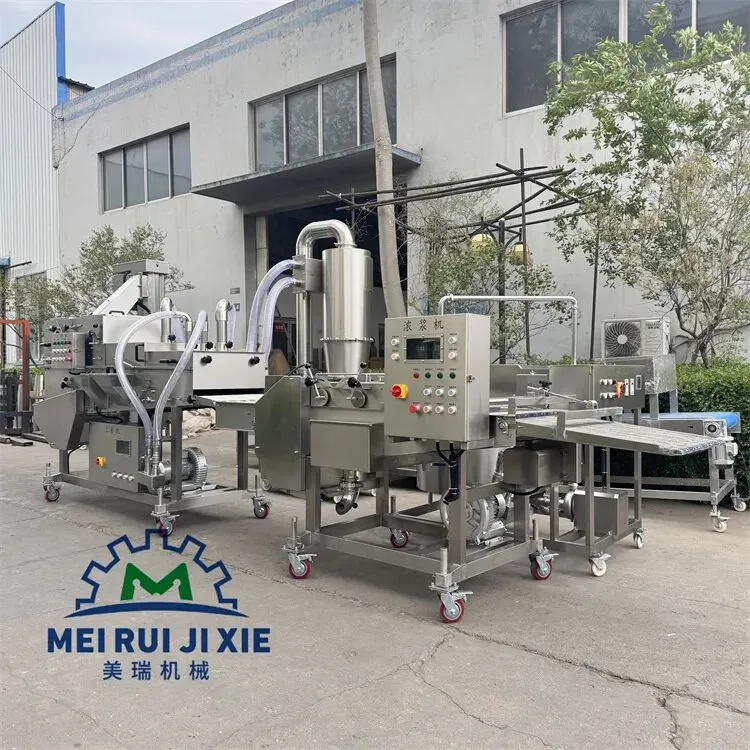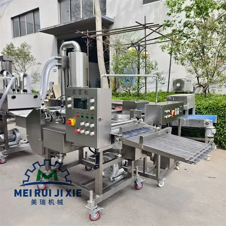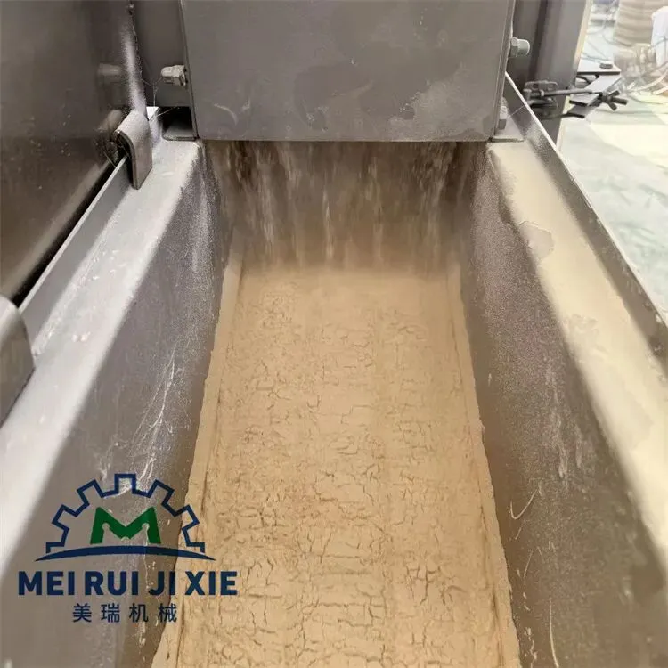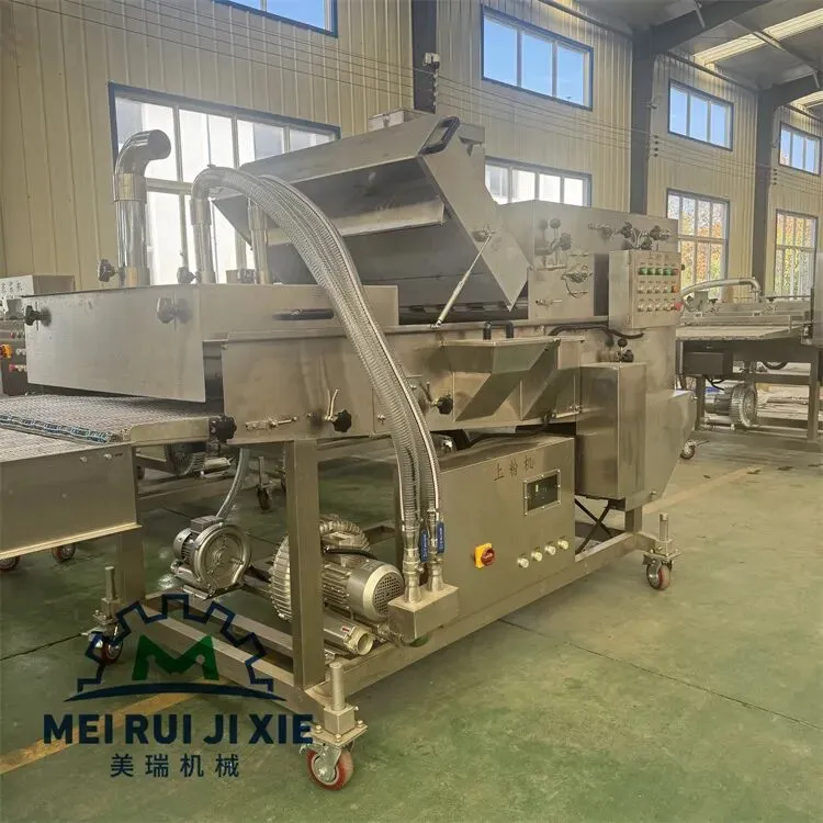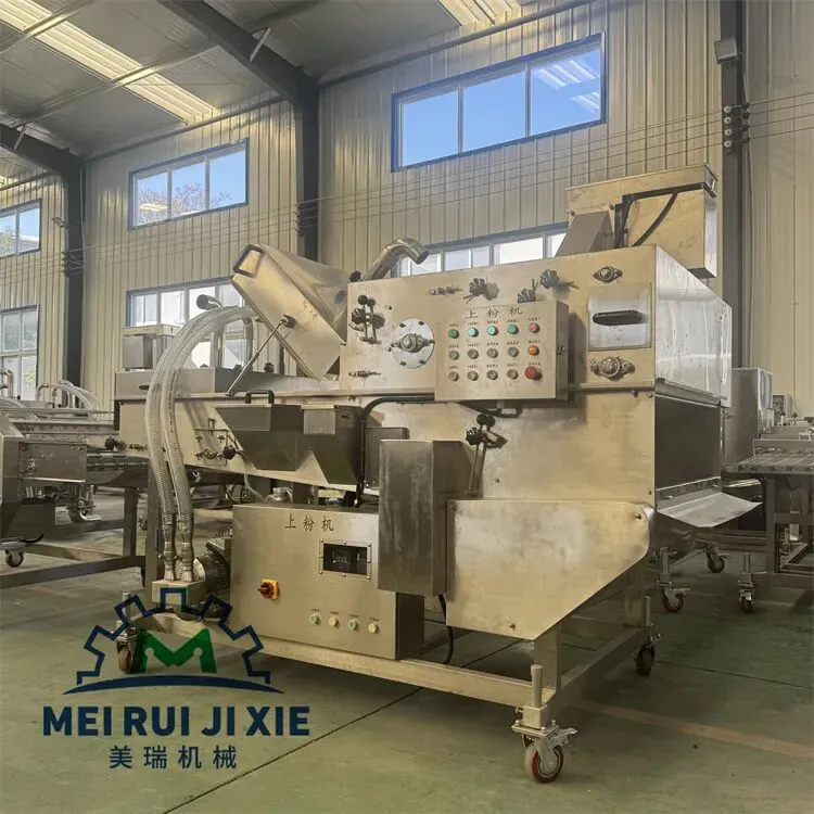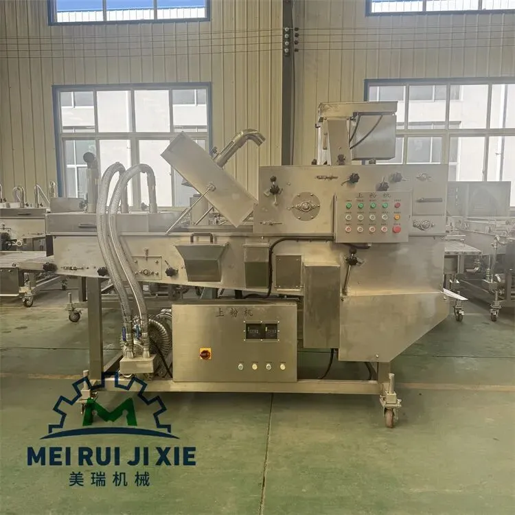 通过观察窗口检查上下粉层的厚度,转动调节手柄在*产品覆盖的基础上,粉的厚度越薄越好;产品进入上粉机的输入网带上,上粉后的产品源源不断的生产出来;关机顺序先风机停止、网带停止、提升停止。