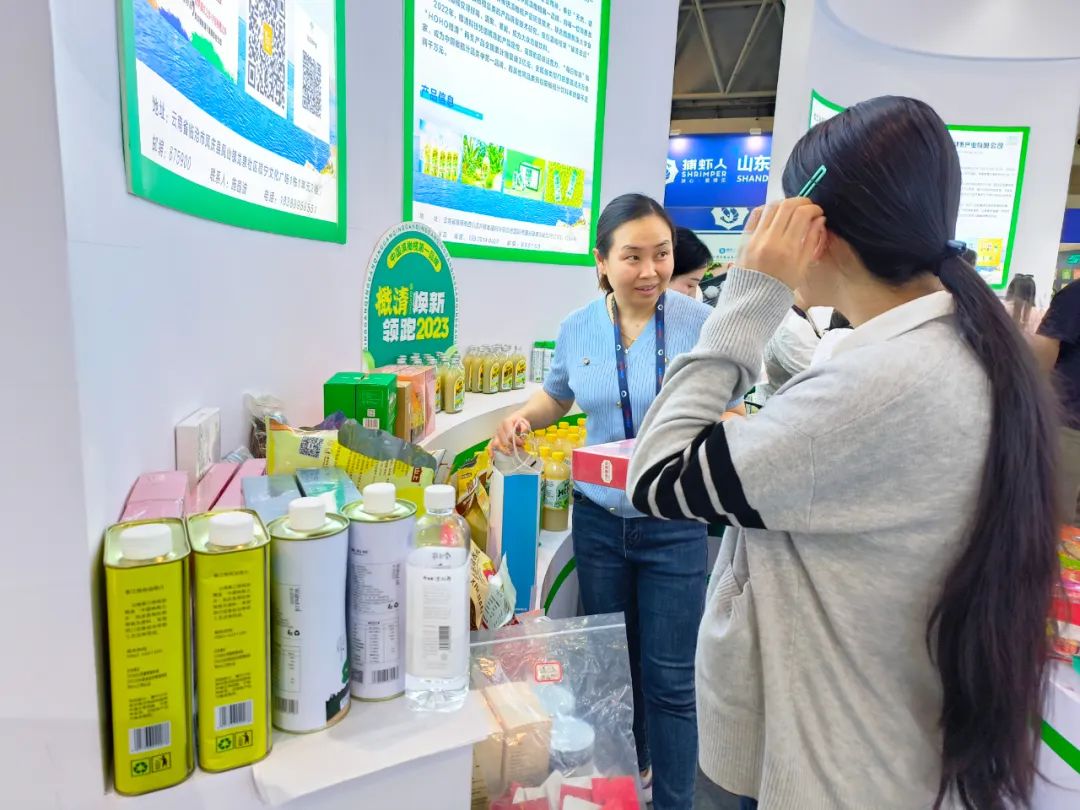 博览会上,呈现着一派热闹非凡的景象,展馆内人来人往、川流不息、热闹非凡。核桃、茶叶等特色产品受到了社会各界人士的青睐,工作人员也为消费者一一介绍,顾客们你一样、我一样,纷纷购买了核桃、茶叶等特色产品,大多数消费者还关注了线上平台——凤庆特产馆,表示今后还会再次购买。