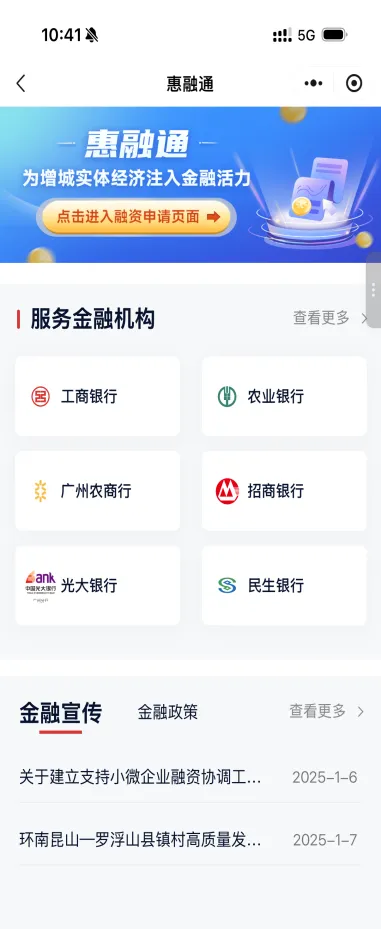 2.金融政策宣传:展示区级金融扶持政策,助力惠企政策直达。