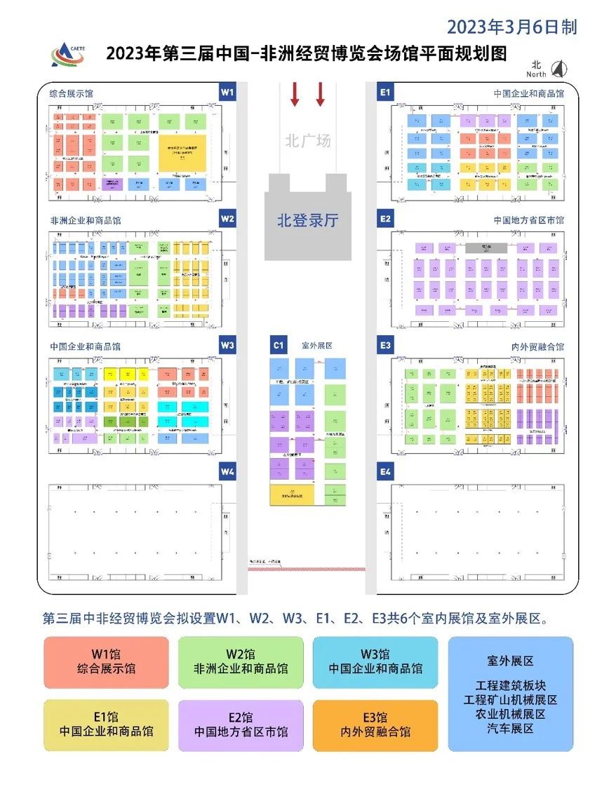 展馆包括综合展示馆、非洲企业和商品馆、中国企业和商品馆、中国地方省区市馆、内外贸融合馆和室外展区。6月29日—30日仅限专业观众进入展馆,7月1日—2日为公众开放日。