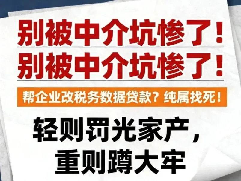 说白了,那些拍着胸脯说“能帮你改税务数据,保证贷到款”的中介,全是在给你挖坑!这种操作,不光要被行政处罚、罚得底朝天,情节严重点的,直接蹲大牢没商量。
