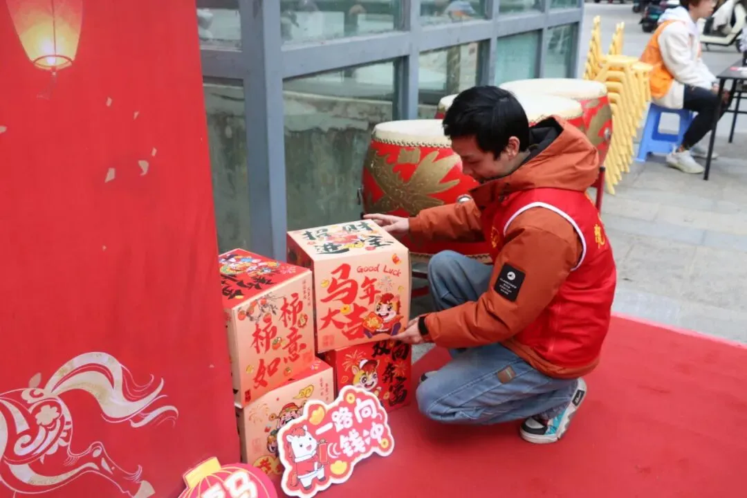 文艺节目演出区,志愿者们早早到场投入筹备,铺设红毯、摆放新春装饰,调试音响设备,以保障演出顺利举行。演出过程中,志愿者们各司其职,高效做好催场衔接、现场引导等工作,有序组织观众入场就座,全程守护现场秩序。台上节目精彩纷呈、好戏连台,台下观众热情高涨、掌声不断,大家沉浸在欢乐的氛围中,不时拍手叫好、拍照留念,整场演出在欢声笑语与热烈喝彩中圆满落幕。