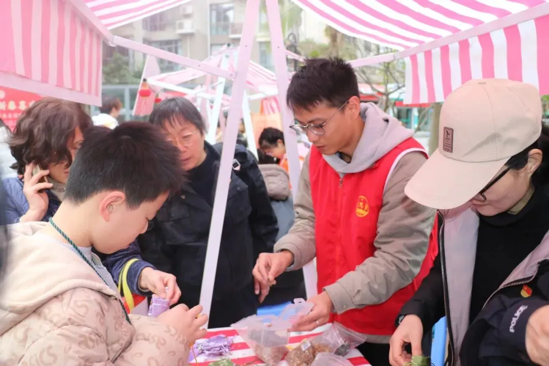 非遗互动体验区里热闹非凡,志愿者们化身贴心“福气引导员”,热情迎候前来参与的居民,耐心讲解打卡规则,细致引导大家持游园卡有序集章。写联送福、手工拓印、香囊缝制、手绳编织等多个摊位前人头攒动,退休职工们兴致盎然、踊跃参与,在志愿者的协助下亲手制作新春好物。大家在欢声笑语中体验非遗文化,集满印章后兑换纪念礼品,感受到浓浓的新春暖意与邻里温情。