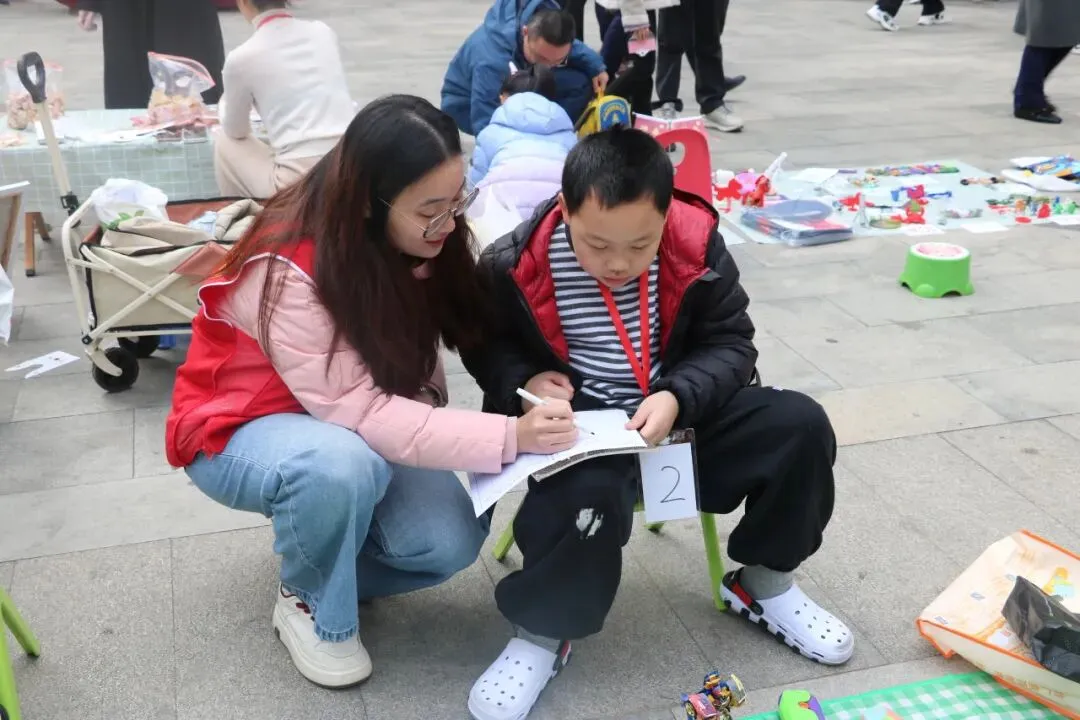 亲邻市集区里,退休职工们将家中闲置物品拿出售卖或交换,摊位上的衣物、书籍、日用品等琳琅满目。志愿者们提前到场协助摊主搭建摊位、铺设地毯、摆放物品,为摊主发放号码牌和记账本,细致讲解记账规则与活动注意事项。活动中,志愿者们穿梭在各个摊位之间,协助做好记账统计的工作。大家在买卖与交换中增进了邻里情谊,让闲置资源“活”起来,让“亲邻”理念深入人心。