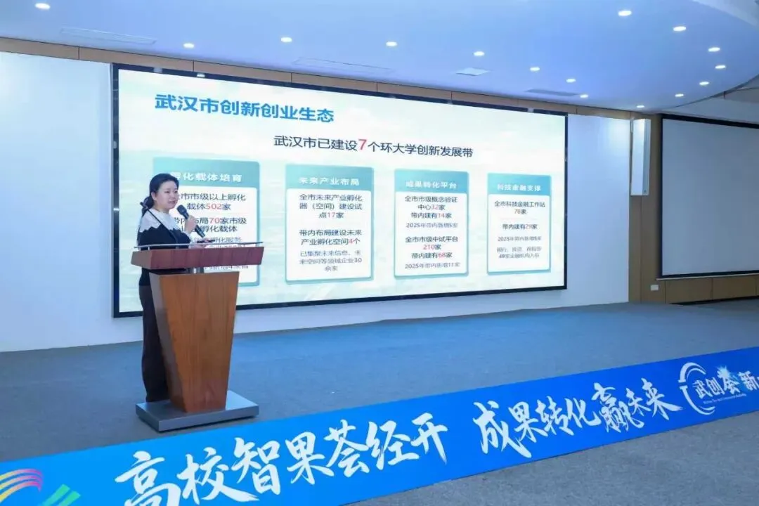 针对高校成果转化、师生创新创业的核心需求,活动专门设置政策宣讲环节。现场,武汉市科技成果转化促进中心相关负责人对武汉市科技成果进行宣讲。政策涵盖项目类、平台类和服务类三大类型,具体包括概念验证中心备案、技术交易补助等内容。同时,负责人重点介绍了技术合同认定登记中的增值税和企业所得税的相关的税收政策,助力高校科技成果从“实验室”走向“产业市场”。