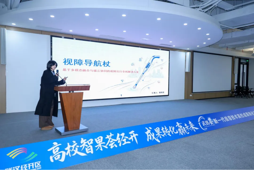 现场,5个来自江汉大学、武汉理工大学的优质项目进行精彩路演,项目涵盖智能感知、视频剪辑、创意生成、视障出行、智能文创等多个领域。据了解,这些项目均由高校专家创业团队潜心研发,兼具了技术创新性和产业落地性,尽显在汉高校在新一代信息技术领域的创新硬实力。