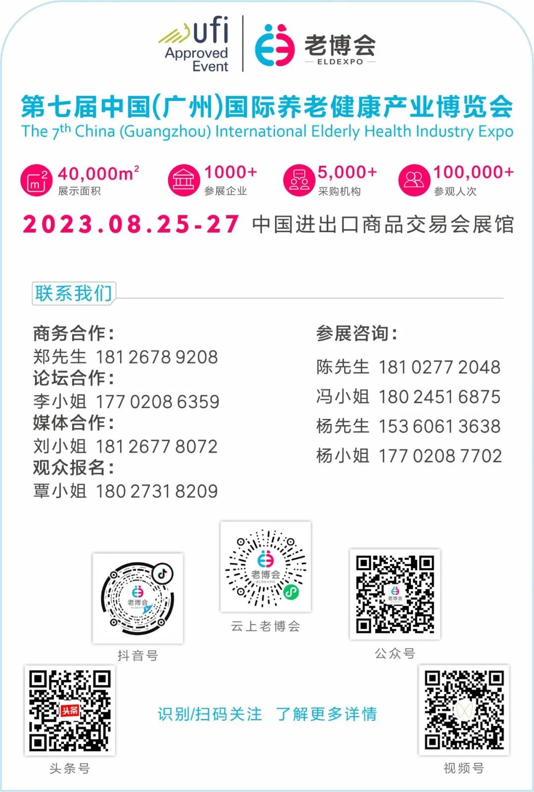 展会同期举办2023广州医疗与健康产业博览会(以下简称“医博会”),医博会由广州市卫生健康委员会指导,由老博会主办单位之一广东跨采展览有限公司主办,将发动数百家医疗机构参观与会,两展邻馆举办,优势贯通,共享数万精准专业买家资源,百余媒体宣传互动,为广大参展品牌展览展示、渠道建设、贸易对接提供最佳平台!广州老博会是一个连接社会大众、专业机构和供应商的大平台,是一个非常好的平台,我们希望广州老博会越办越好,共同把养老产业、康养产业推向一个新的高峰。广州老博会对我们的收获非常大,感谢主办方让我们有优质的平台,使我们的产品能够展示给我们的用户,希望老博会越办越好,下一届我们还会来参加广州老博会。