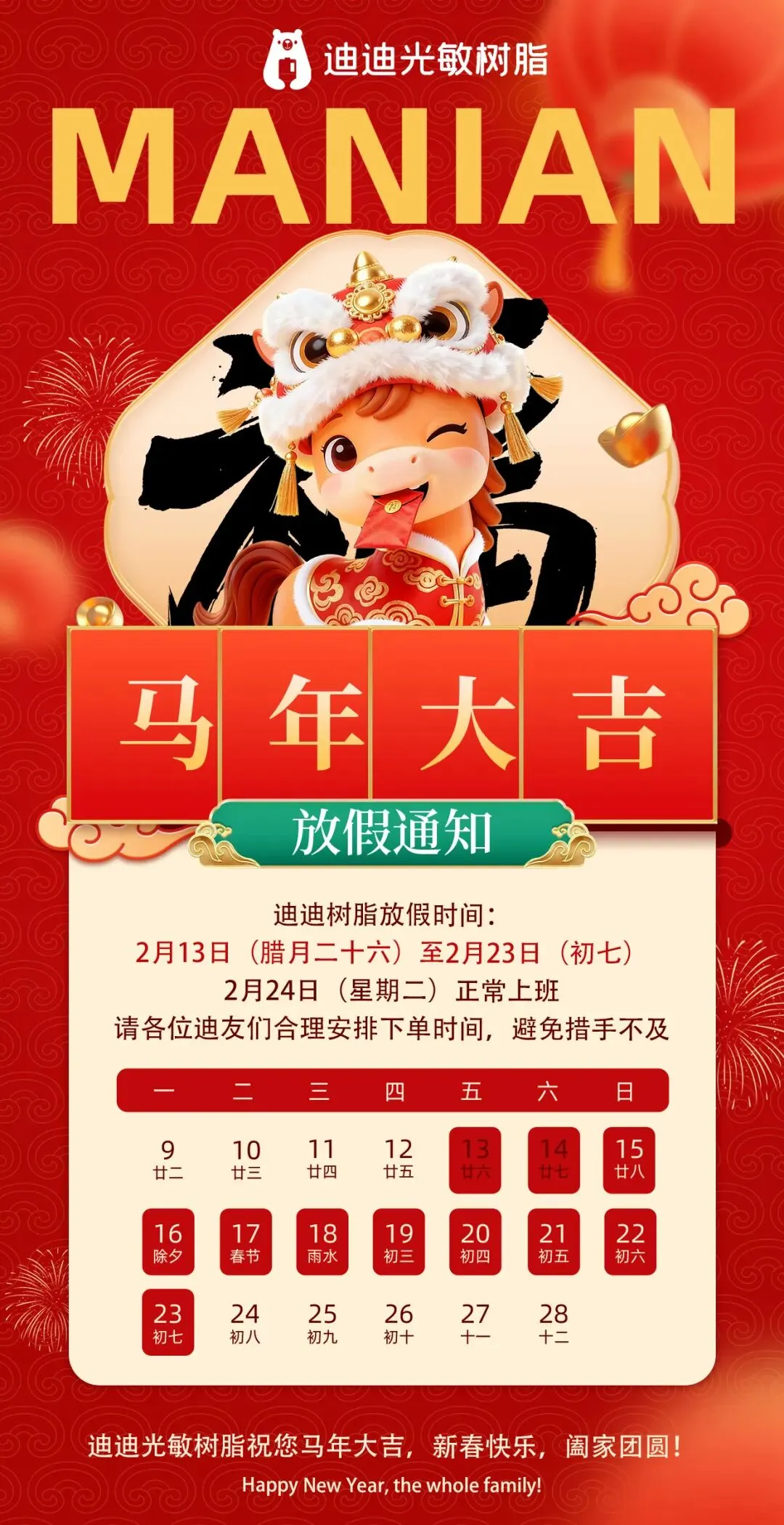 **2月24日(正月初八)正式开工发货**