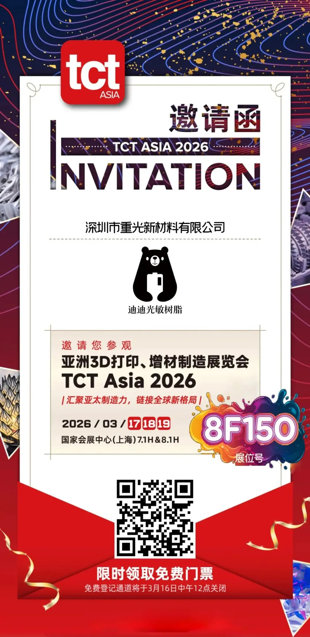 # 春节放假通知 | 上海TCT展会邀约:致前沿的创造者,来现场聊聊树脂打印!